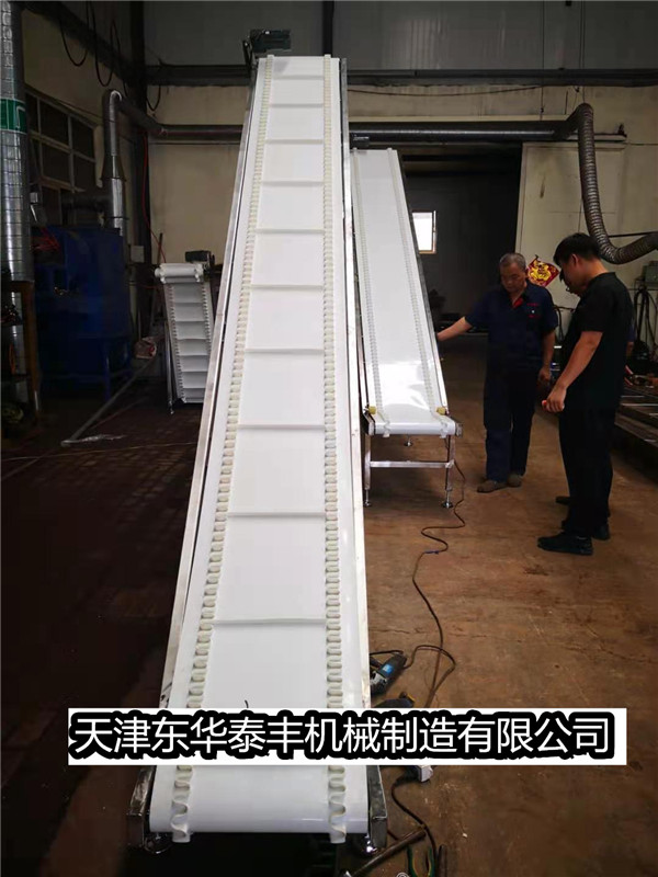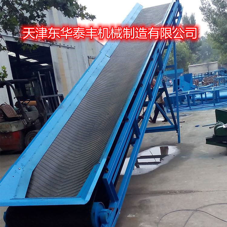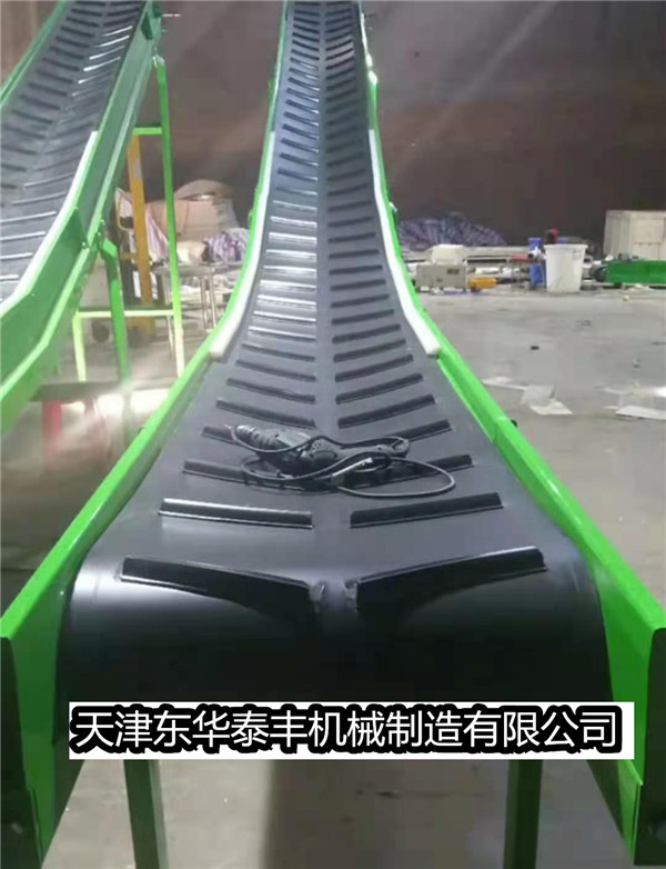 爬坡皮帶機輸送的角度較好不要超過13度,如果超過13度要在皮帶表面增加擋條或者皮帶要選擇帶有摩擦的草帶。在制作爬坡皮帶機時通常要在皮帶機兩側(cè)腰邊增加防護欄或在皮帶的側(cè)邊增加裾邊,以防止物體在輸送過程中跌落。